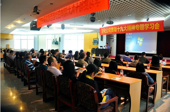 为深入学习贯彻十九大精神,2017年11月29日下午3时,在公司17楼会议厅,由白沙街党工委、公司党委联合举办“贯彻十九大精神专题学习会”,本次学习会邀请了北街政务中心副主任陈伟健、公司党委书记方小潮领学主讲。公司本部、德力光电、生物中心党、工、青、妇等员工60人参加了会议。