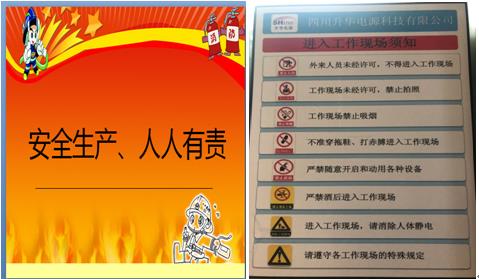 升华电源在相关部门和管委会的帮助和指导下积极营造宣传氛围,办公场地内张贴相关海报,《国家安全法》、“员工保密守则”、安全生产标语“安全生产、人人有责”等,同时,利用公司LED显示屏滚动播出相关宣传标语,同时开展了相关培训工作。