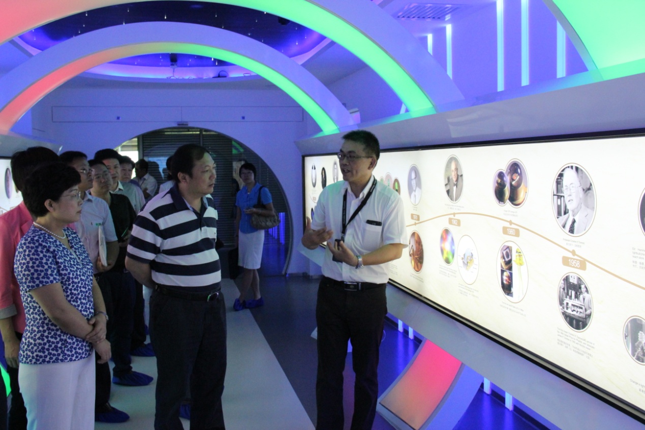 德力光电副总经理叶国光陪同胡功民及钟军副市长先后参观了外延片、芯片生产车间及展厅,副总经理叶国光在参观过程中介绍了公司的产品、生产工艺、行业优势等相关情况。胡功民对我公司的技术表现出了浓厚的兴趣。