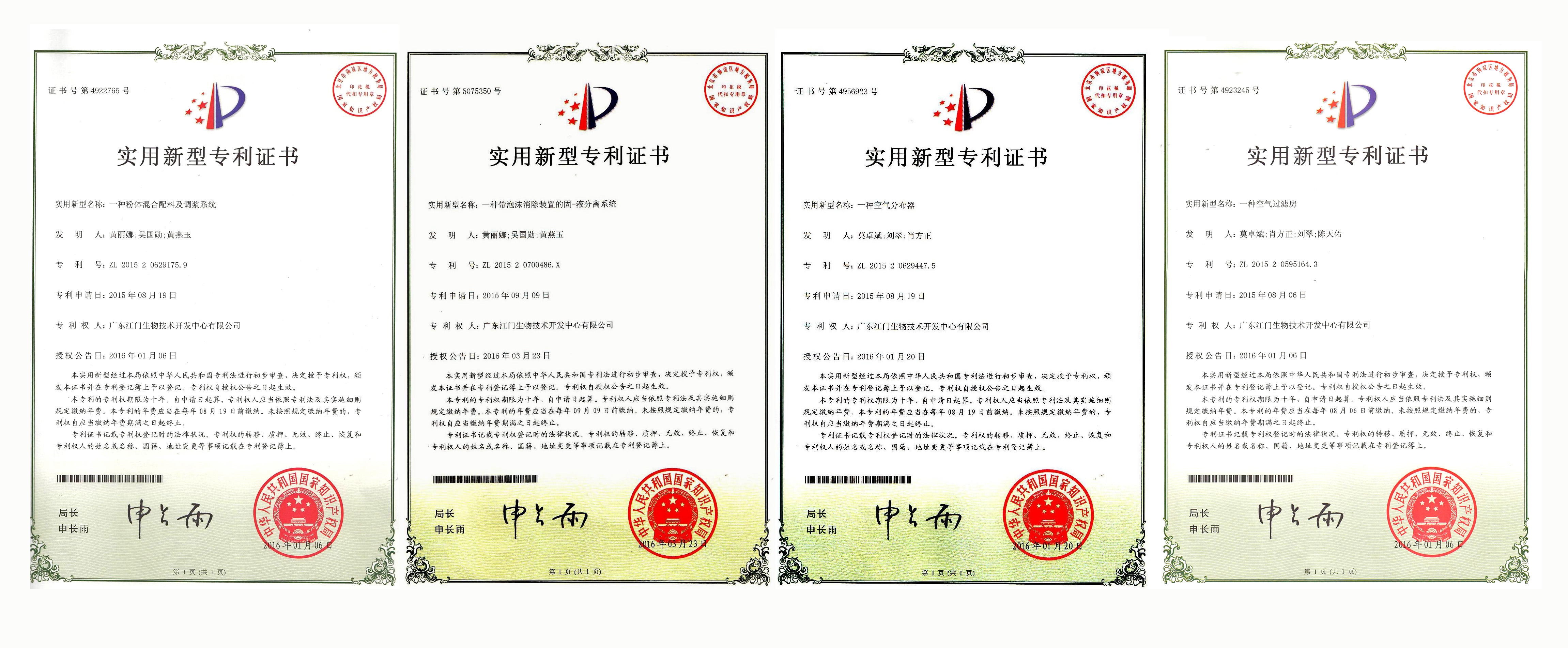 生物中心关键工艺设备取得4项实用新型专利证书