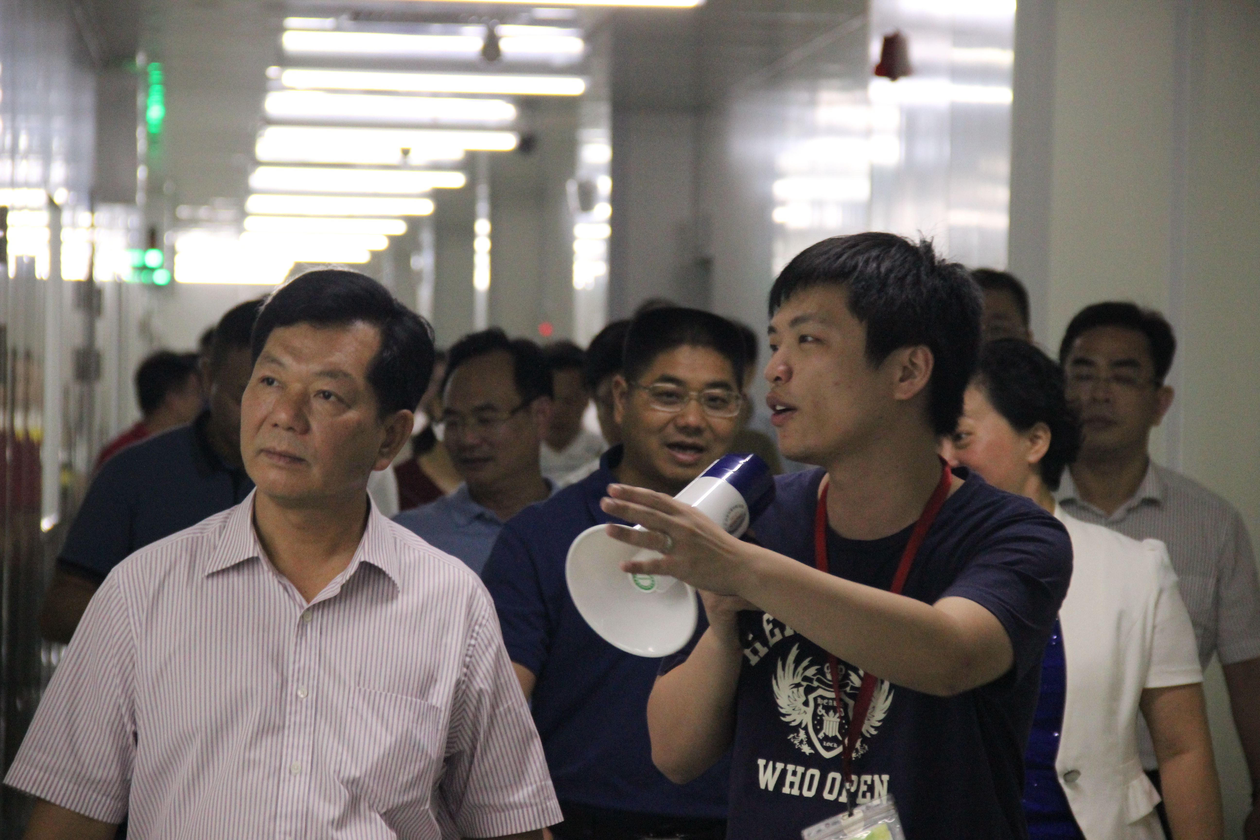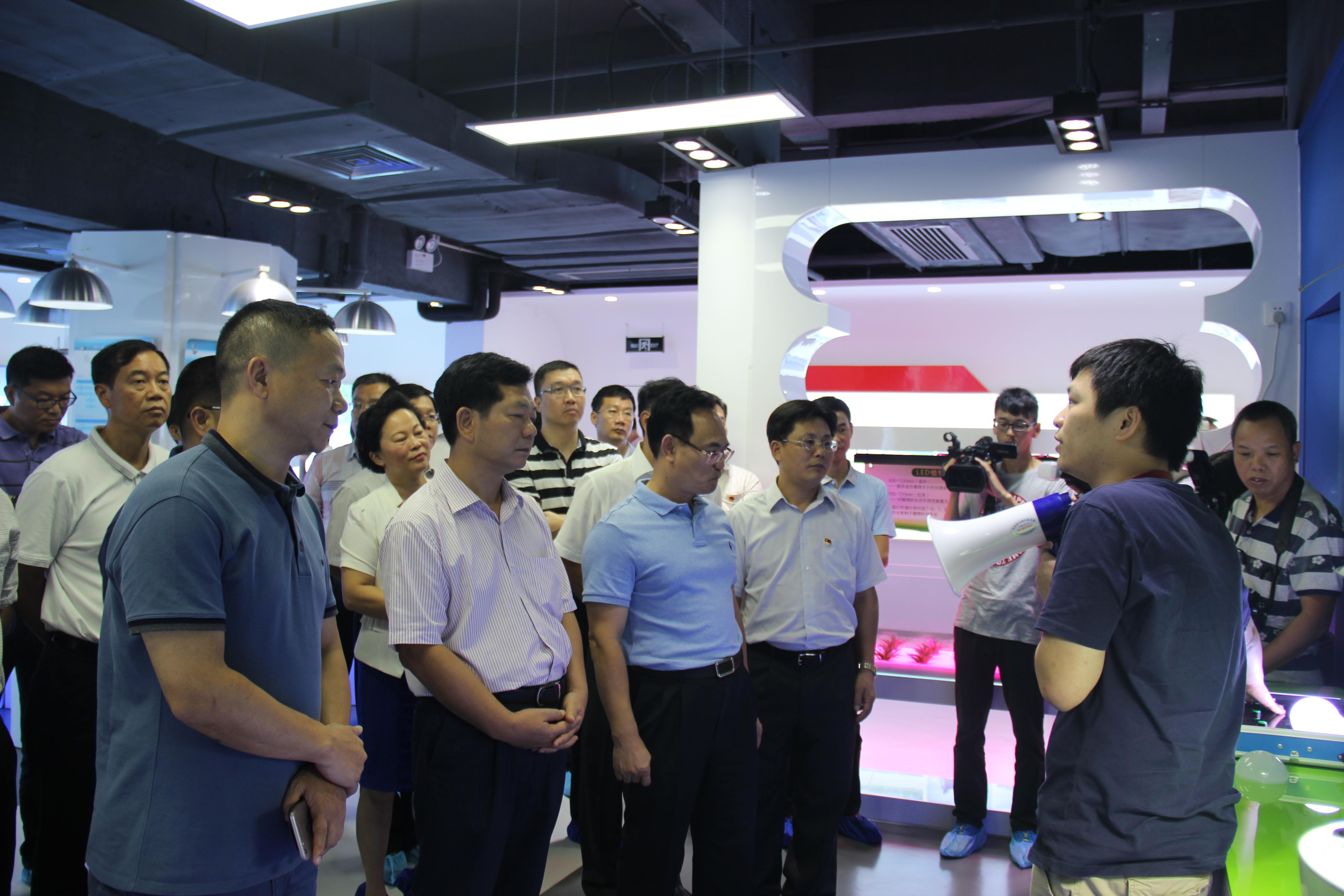2016年7月19日上午,开平市市党政领导班子一行80余人,在副市长、高新区党工委书记、管委会主任、江海区委书记梁许赞和江海区委副书记、区长周惠红等人员的陪同下,来到德力光电进行考察工作。