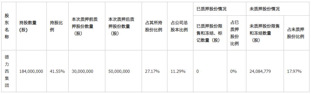 截至公告披露日,控股股东及其一致行动人所持质押股份情况如下: